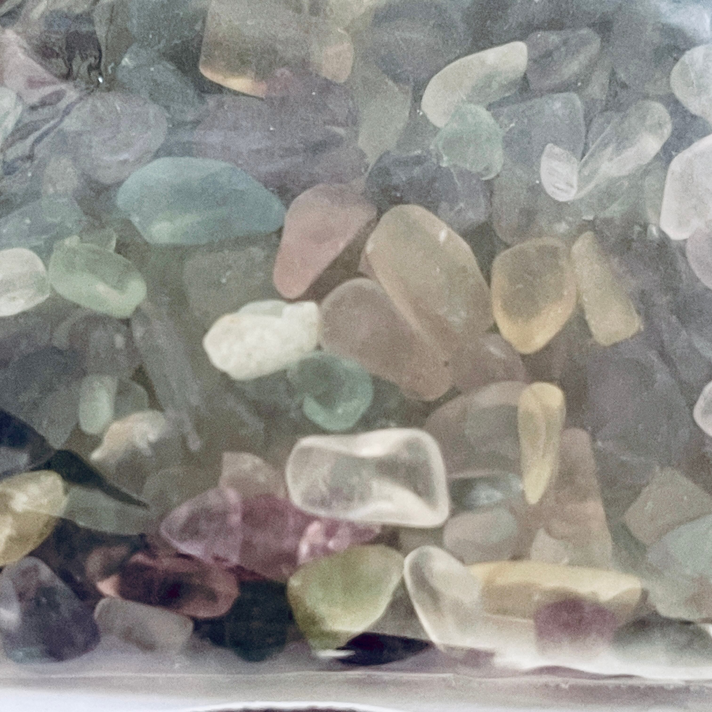 フローライトは、知性やバランスを象徴するとされ、心を落ち着かせるエネルギーが宿っていると言われています。このさざれ石は、ヒーリングや瞑想、さらにはインテリアの一部としても非常に重宝します。