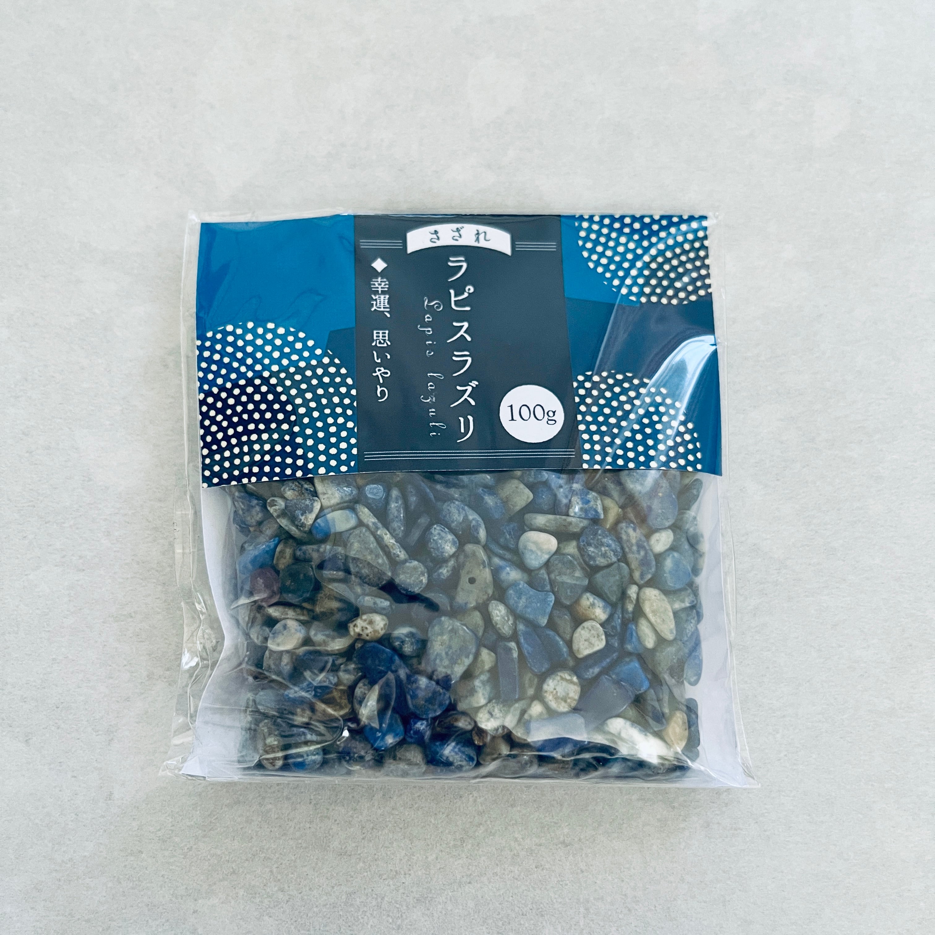 天然のラピスラズリを使用したさざれ石。その美しい青色は、心を穏やかにし、浄化の効果を与えてくれます。
